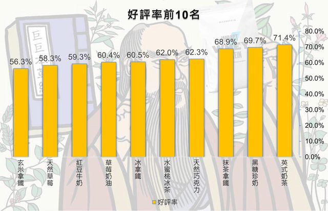 好評率的算法是 給出正分人數/總評分人數 這10種算是大家公認可以喝的口味了 但值得注意的是 沒有任何一款口味是沒有極負評的 https://i.imgur.com/kkm3CZy.jpg