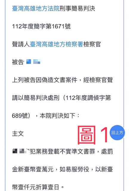 : 到判決書,對方被判以業務登載不實罪名。
