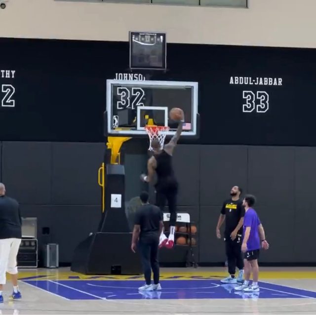 https://x.com/thedunkcentral/status/1710053842761466028 內有影片 LeBron James receives the news that’s he’s officially the oldest player in t he NBA LeBron James 聽到自己正式成為現役最老球員的反應,先是抱頭尖叫,之後跑去暴扣籃 框。 https://i.imgur.com/jWlqodc.jpg