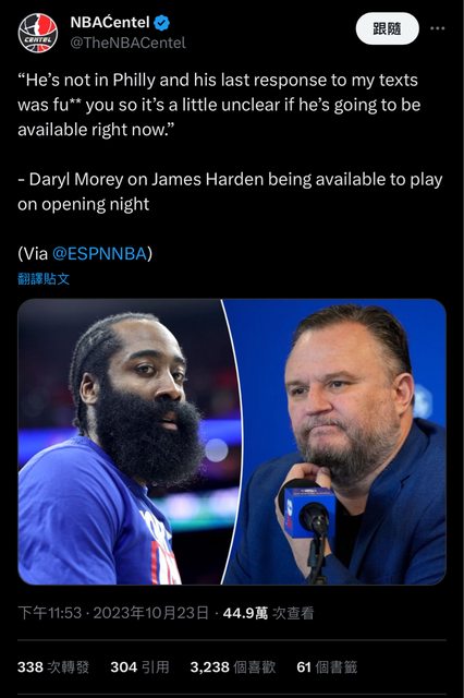 推 gandalflee : 哈登在不在費城 不在 哈登是不是不爽莫雷 是 10/24 23:41