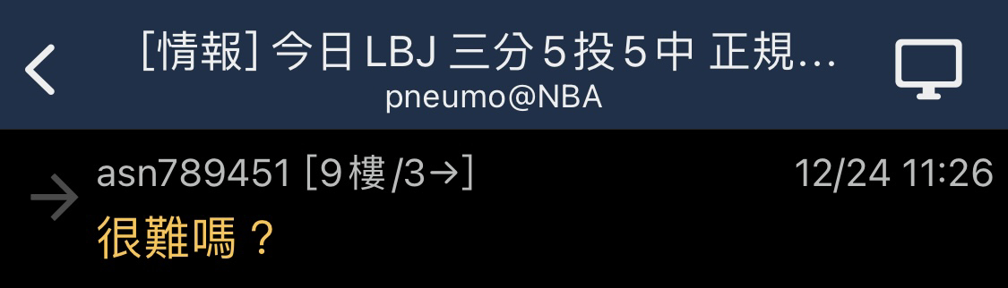 推 venter125 : 今天的LBJ沒特別刷數據吧 有切入 有上身體 還有三分 12/24 13:13