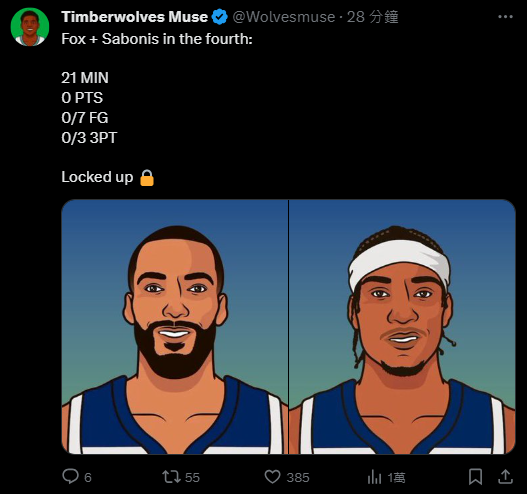 標題[BOX ] Timberwolves 110:98 Kings 數據