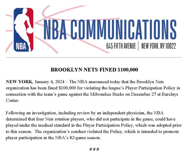 推 Tommy92C : 有上都被罰,籃網也太慘,上10分鐘叫沒出席? 01/05 02:12