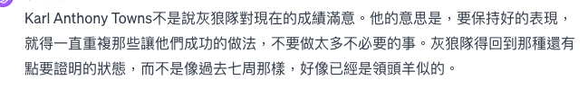 推 vince4687 : KAT是一個好的團隊球員 但是不適合當球隊領袖 01/06 01:29