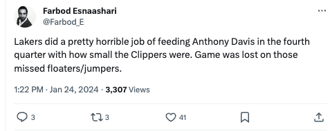 推 jamescle23 : 第四節真的很少餵球給AD 01/24 14:57