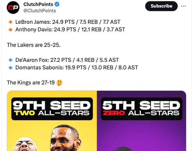 → simon5030 : 加賽湖人應該是史上第一支雙全明星進不了季後賽的 02/03 23:15