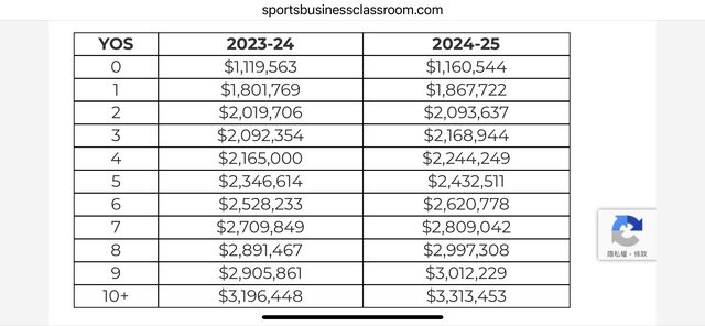 1. 團隊薪資上限141M (略低於預測的142或142.5)