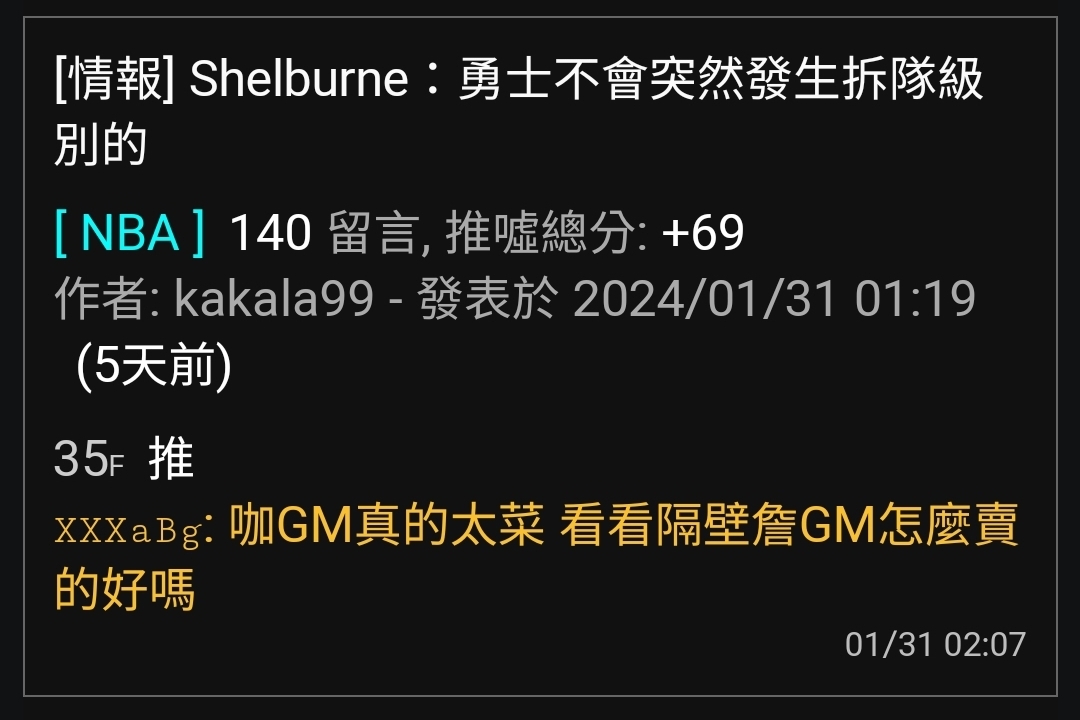噓 draymond : 我跳車了 馬上滑到下一篇 02/05 15:50