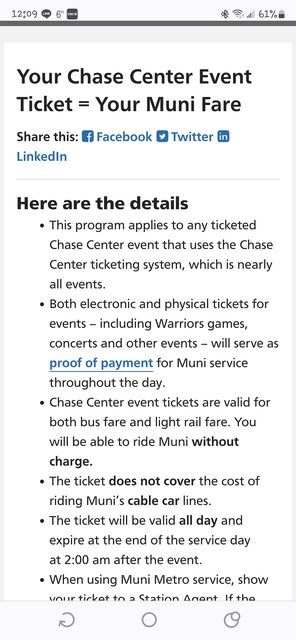 總體來說勇士球場的氣氛蠻不錯的! 開場很熱血.... 就是票價不便宜... 球場交通的部分的話, 有買勇士的門票可以免費使用當天的Muni 公車 輕軌系統哦! http://i.imgur.com/ly2D5MJ.jpg