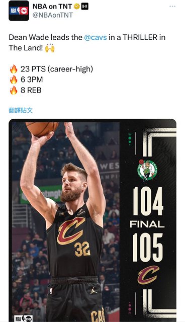 Dean Wade今天好表現幫助球隊贏得比賽,尤其是青賽第四節好幾波追上的時候又把領先要回來