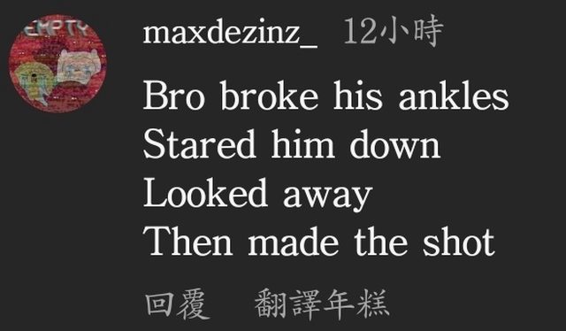 → HellFly : 同時應該是看著他投三分後直接回頭 03/15 22:40