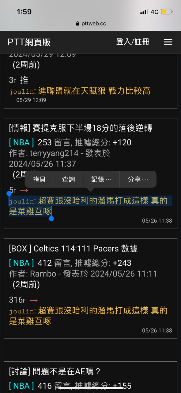 → Aether13 : 節奏還是JT在維持 但第四節的印象分數真的很差 06/13 14:24