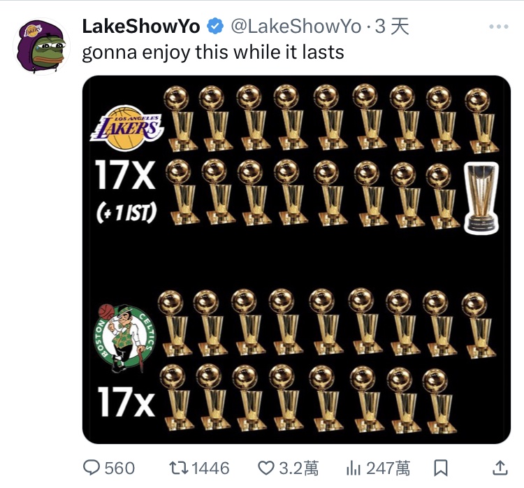 ppt12527 : 湖人可以把季中賽冠軍加進來算 06/18 12:46