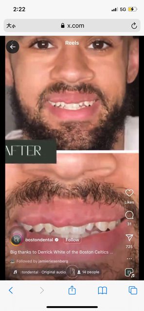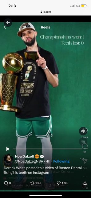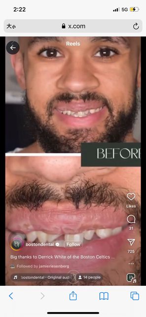 https://reurl.cc/jWj63m Derrick White posted this video of Boston Dental fixing his teeth on Instagram https://i.imgur.com/9uYLQXI.jpeg