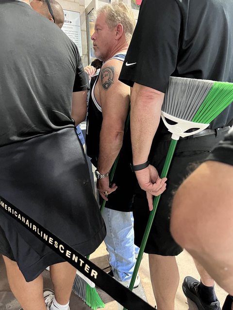 排隊掃票入場的時候看到兩個小牛粉大叔帶著掃把XDDD 我們要來橫掃灰狼囉!!