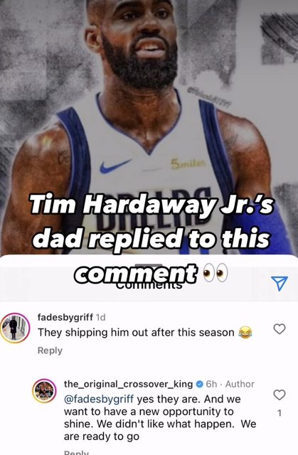 消息來源: https://basketball.realgm.com/wiretap/276193/ Mavericks Will Attempt To Trade Tim Hardaway Jr. 獨行俠隊在休賽季期間將會嘗試交易 Tim Hardaway Jr. 而他在今年季後賽也跌出球隊輪換陣容 目前跟獨行俠隊合約剩下一年,年薪為1620萬美金 今年球季一共出賽79場,平均上場 26.8分鐘,繳出 14.4分 3.2籃板 1.8助攻 短評或心得: Tim Hardaway Sr. 回覆網友留言也表示他們希望有新的機會可以去發揮 https://x.com/Mavs_FFL/status/1804157364951450049 https://i.imgur.com/vS8V1w9.jpg