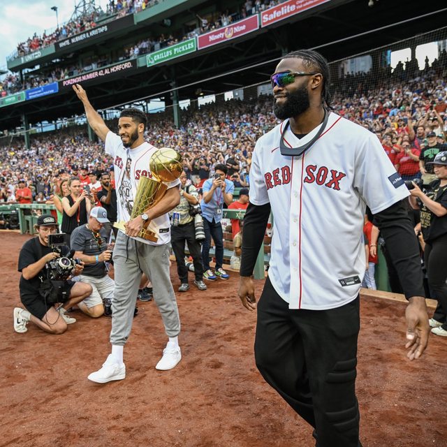 https://x.com/mlb/status/1805387097433686156?s=46 NBA champions, the Boston Celtics, are at Fenway tonight Jaylen Brown, Jayson Tatum, Joe Mazzulla, Kristaps Porzingis, Derrick White and Al Horford threw out the ceremonial first pitches https://i.imgur.com/3eidxUo.jpeg