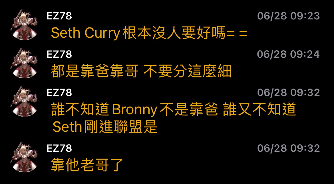 : → EZ78 : 誰不知道Bronny不是靠爸 誰又不知道Seth剛進聯盟是 06/28 09:32