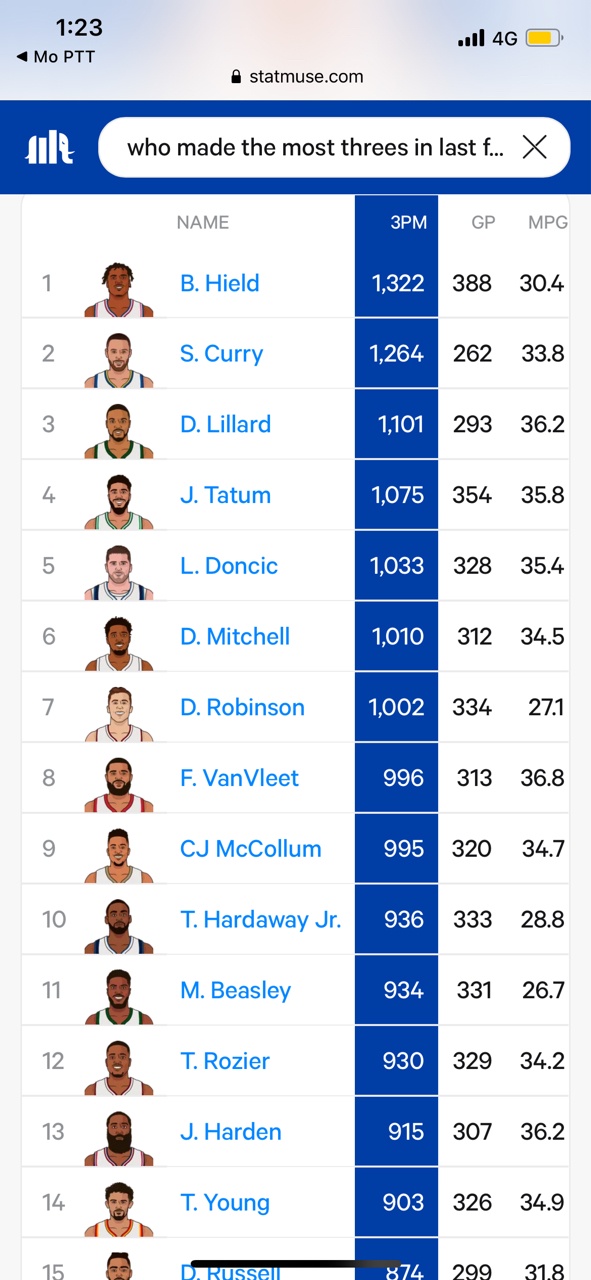 → jeff1013 : 他目前連6季三分200+也是歷史第二(咖哩連7) 07/03 13:16