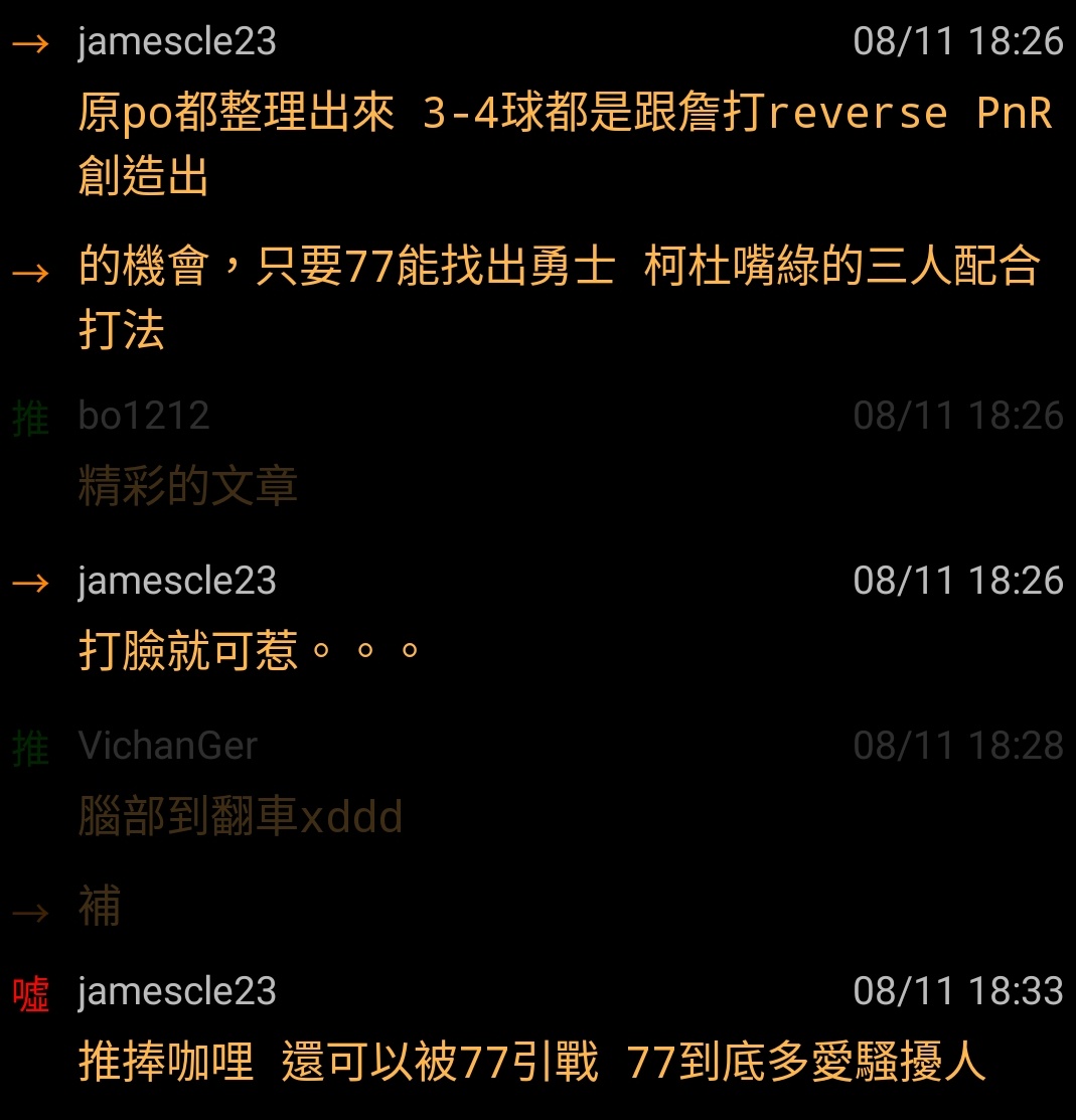 推 jamescle23 : 詹咖的reverse PnR 威脅性很大 08/11 17:08