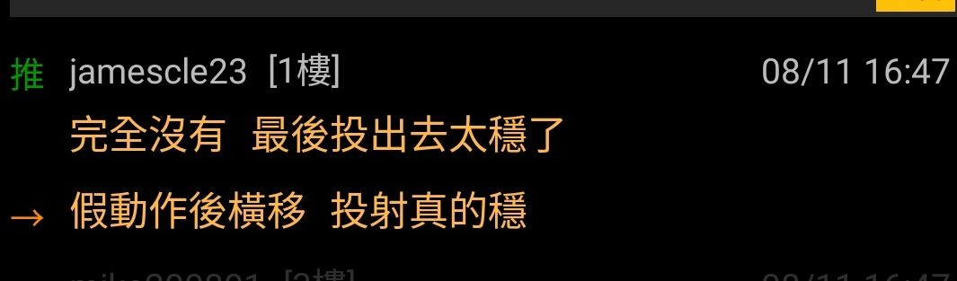 推 jamescle23 : 完全沒有 最後投出去太穩了 08/11 16:47