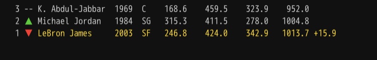 → sck921 : 項,如果四個項目平均分,LBJ早就壓過MJ了,這個排 08/23 19:53