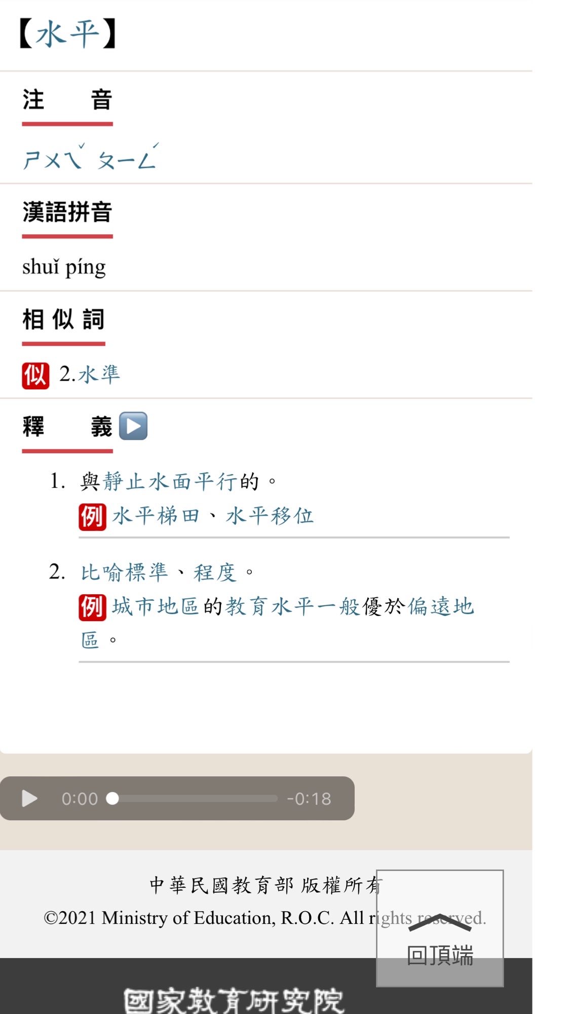 → qpeter : "水平" 中華民國教育部國語辭典 有收錄好嗎... 09/05 20:00