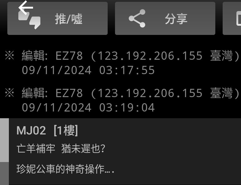 噓 k960674 : 先公開道歉…… 09/11 08:47