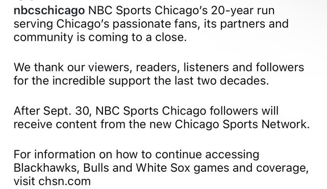 NBC旗下的芝加哥體育分台,本週在自己的官方社群發表了一項聲明: