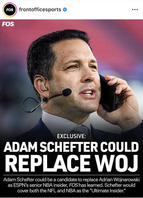 ESPN也考慮讓他們NFL的記者Adam Schefter兼差報導NBA