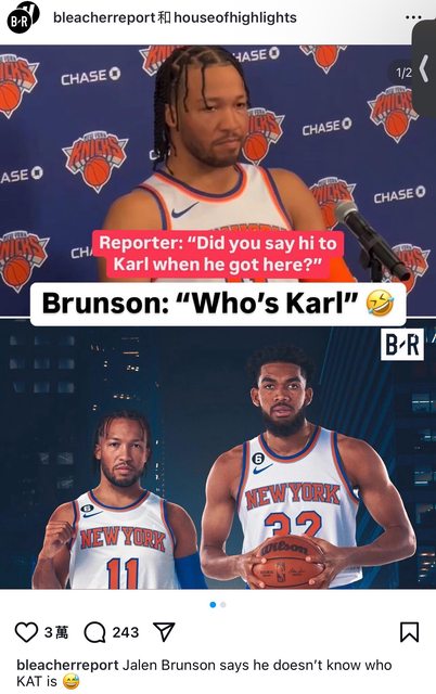 推 illidan23 : 大家是不是搞不清楚狀況,KAT去自介是因為Brunson 10/04 18:24
