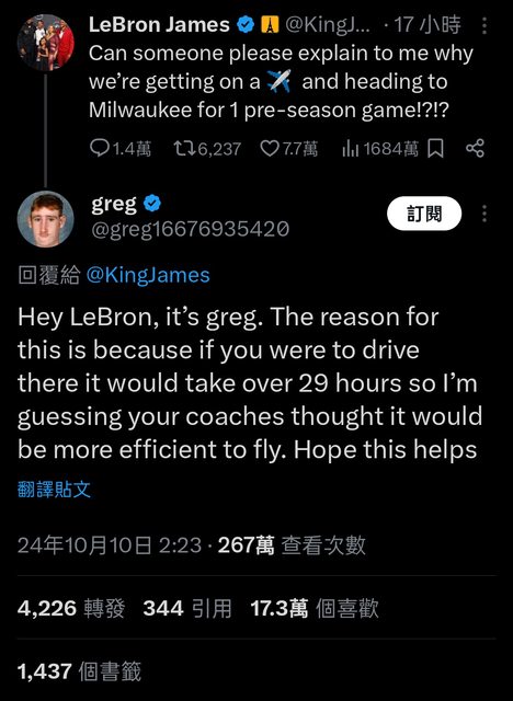 推 Kai877 : 老詹:Hello Greg ! You’re next ! 10/10 20:06
