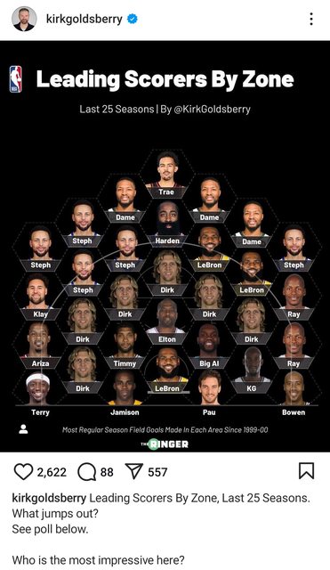 推 biss0220 : 如果這些球星的投射熱區有到S級,那KD就是每個地方 10/23 01:48