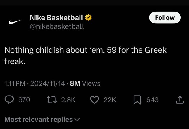 推 Avvenire : 嗯嗯,拿了59分好棒棒!NIKE真的不是來反串的嗎XD 11/15 10:16