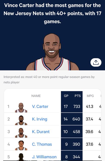 Only Vince, KD, and Kyrie have more 40 PT games for the Nets.