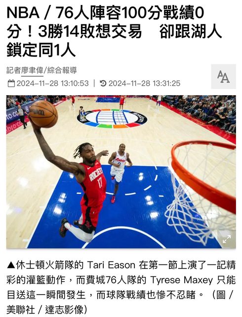 → gswsb : 想到76人曾經同時擁有這兩位,真的後怕 11/29 13:50