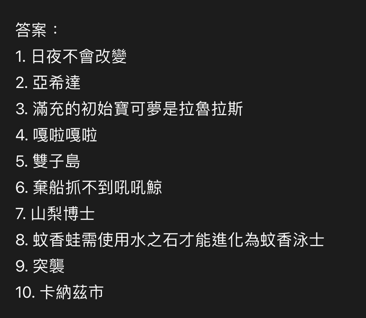 大家好,這次是台灣玩家最熟悉的「寶石版」測驗,祝大家答題愉快!(答案在一樓)