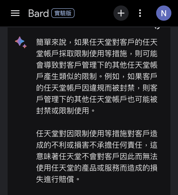 → Ohgogogo: 剛請Bard幫我摘要任天堂日文官方的使用條款,看到關鍵字 10/09 22:07