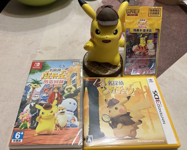 先貼一張遊戲片跟3DS前作以及巨型偵探皮amiibo的合照