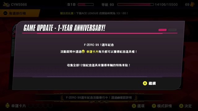 標題[情報] F-ZERO 99一週年更新