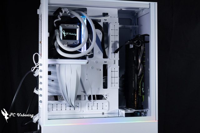 ,讓背面整線空間加大許多,呈現出 50 / 50 平分機殼整體寬度空間,使水冷能夠安裝在