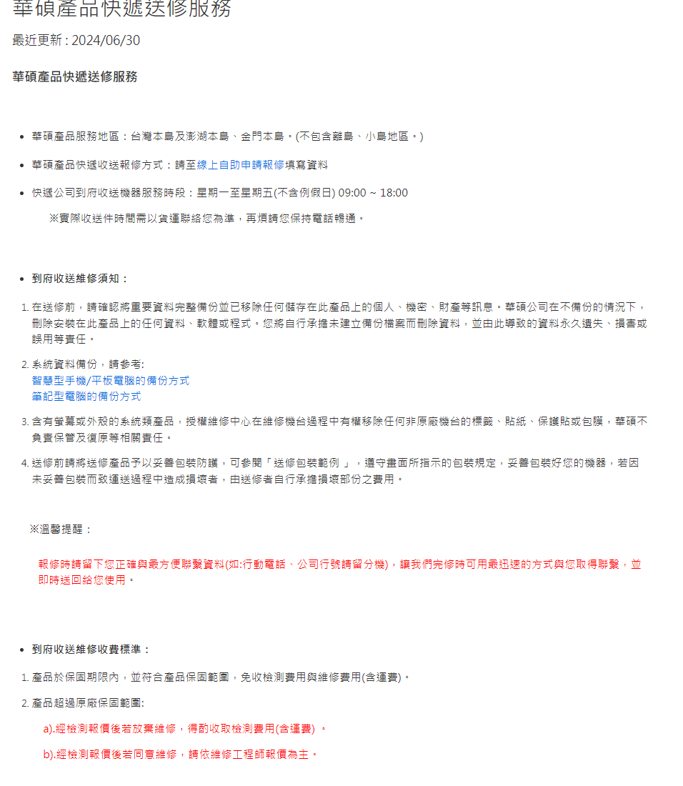 → mrme945: 收電腦回去修,Asus到府收送好像只有筆電 111.71.212.153 07/26 14:15