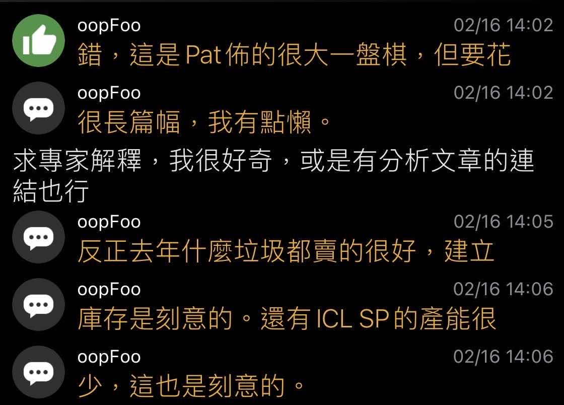 → oopFoo: Pat是太相信元Intel Fab的人可以把良率搞 111.248.88.105 08/02 10:23