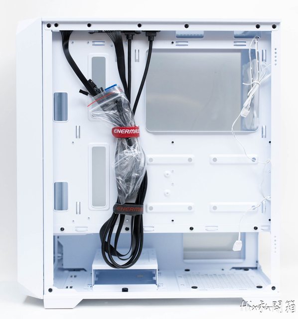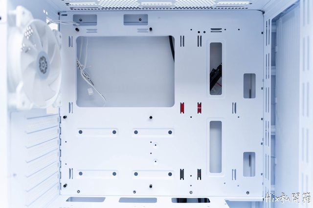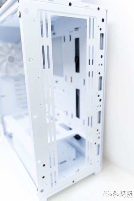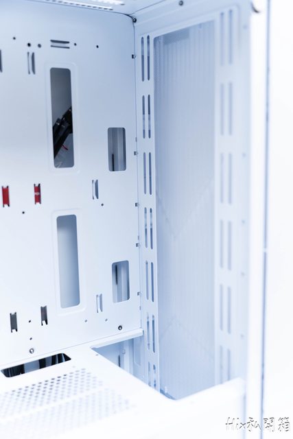 一樣配置120/140的風扇安裝溝,可以看到右側有多開了4個過線圈給風扇走線用
