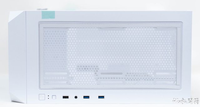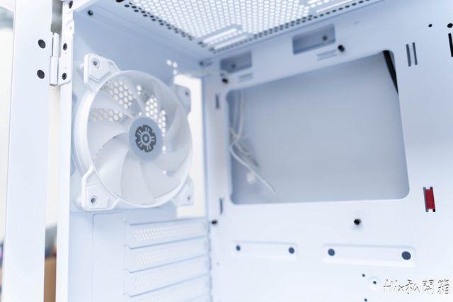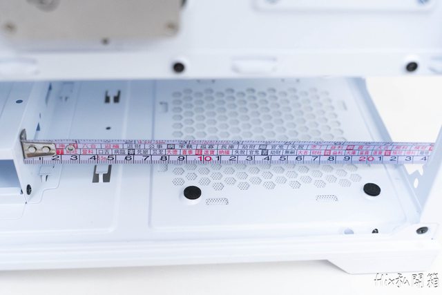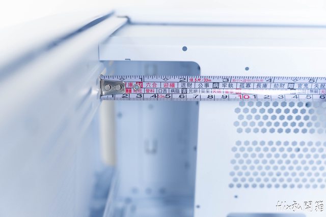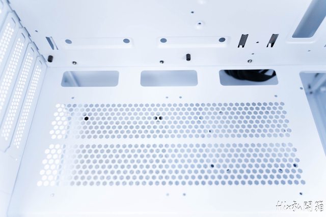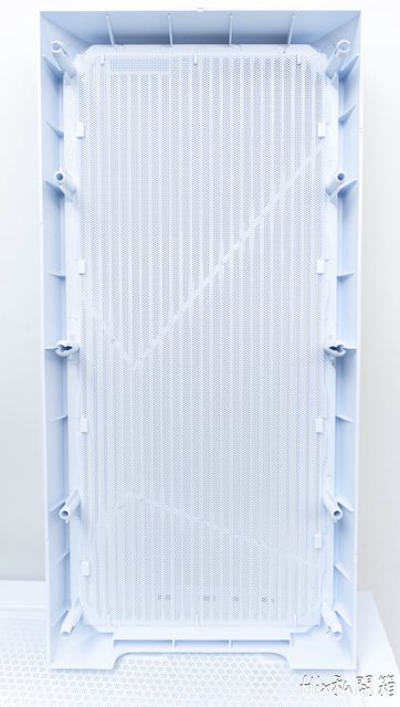頂端有個磁吸式白色防塵網,從這邊可看到有作120系及140系風扇的安裝溝槽