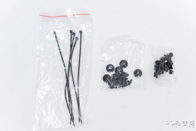 配件部份有束線帶、2.5吋硬碟安裝螺絲及其他螺絲(含銅柱)