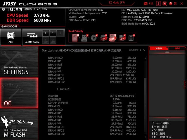 用 MSI MEG Z690I UNIFY 並將 BIOS 更新至 7D29v1G 版本,來測試 T-FORCE XTREEM