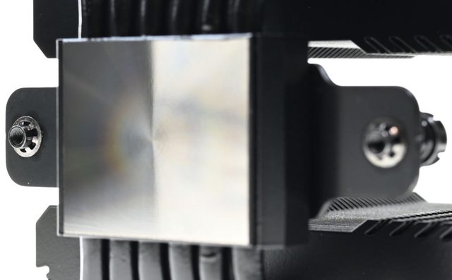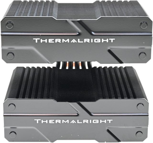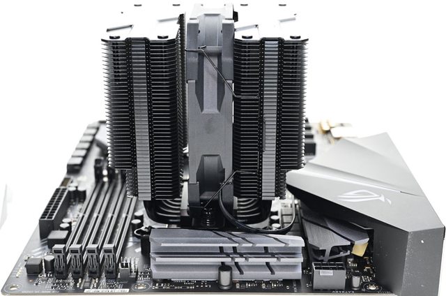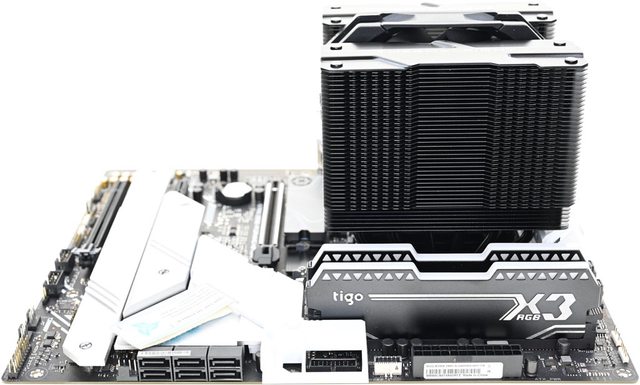 42層高密度鰭片,最下方8片鰭片裁切以閃避記憶體,熱導管與鰭片均採黑化處理,頂部
