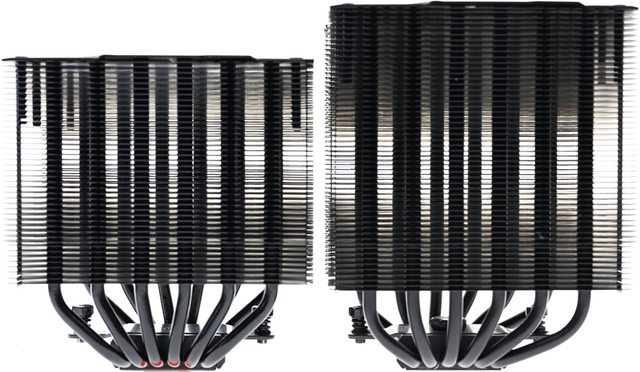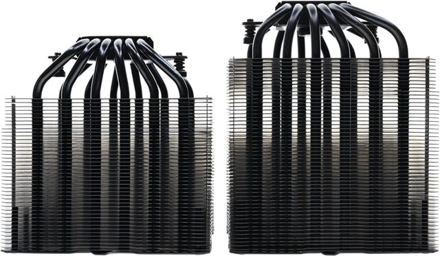 ▼PEERLESS ASSASSIN 120 MINI BLACK(左)前塔/後塔下方8片散熱鰭片縮小,使用皿頭螺
