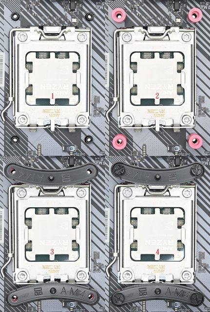 ▼安裝於AMD AM5/AM4平台時,需使用紅色AMD套管及AMD托架固定螺絲。將主機板原裝散